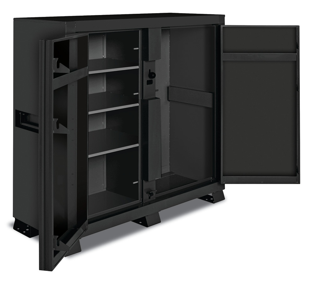 The Southwires Clamshell Cabinet gives you unrestricted access to your tools, materials and equipment. With heavy duty shelves and a single locking point, this cabinet makes it possible to easily access and maximize organization of your materials and equipment. With the Southwire Clamshell Cabinet, there is no better way to control and secure your livelihood.