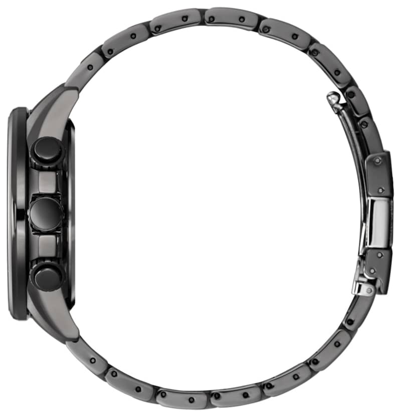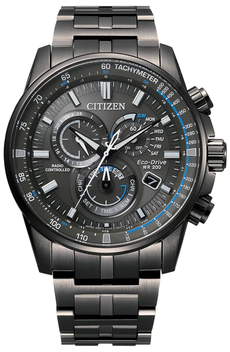 Citizen Eco-Drive PCAT 43mm Chronograph Watch w/ Black Dial & Grey Ion-Plated Stainless Steel Bracelet, Model CB5887-55HThe best-selling PCAT watch from Citizen has been updated with our cutting edge E660 movement, without losing any of the features that made it stand out from the crowd originally. Some of those features include our patented Eco-Drive technology, so the watch will never run out of power or need a battery replaced, as well as a chronograph, perpetual calendar, dual time zones, and power reserve indicator. The stainless steel band and dial are a solid black for a sleek, sophisticated look that won’t be out of place in the boardroom, at the beach, or anywhere in-between. Features Movement Technology