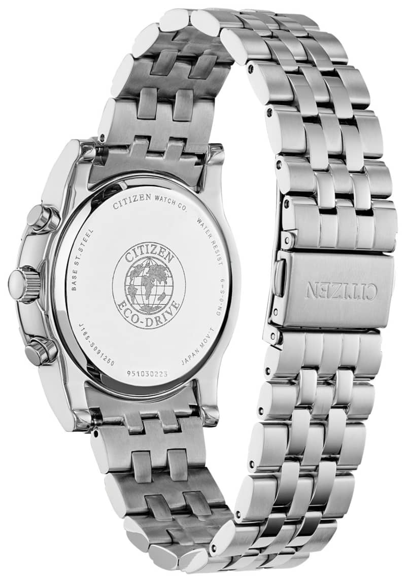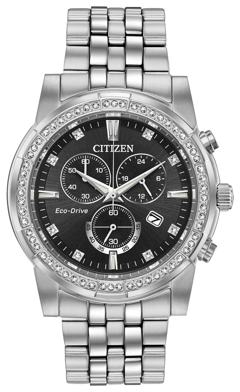 Citizen Eco-Drive Crystal Chronograph Black Dial Silver-Tone SS Bracelet Watch, 42mm