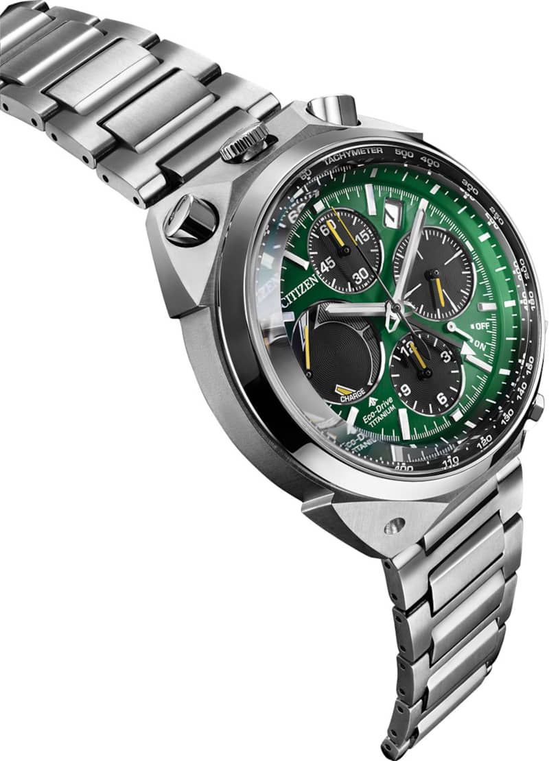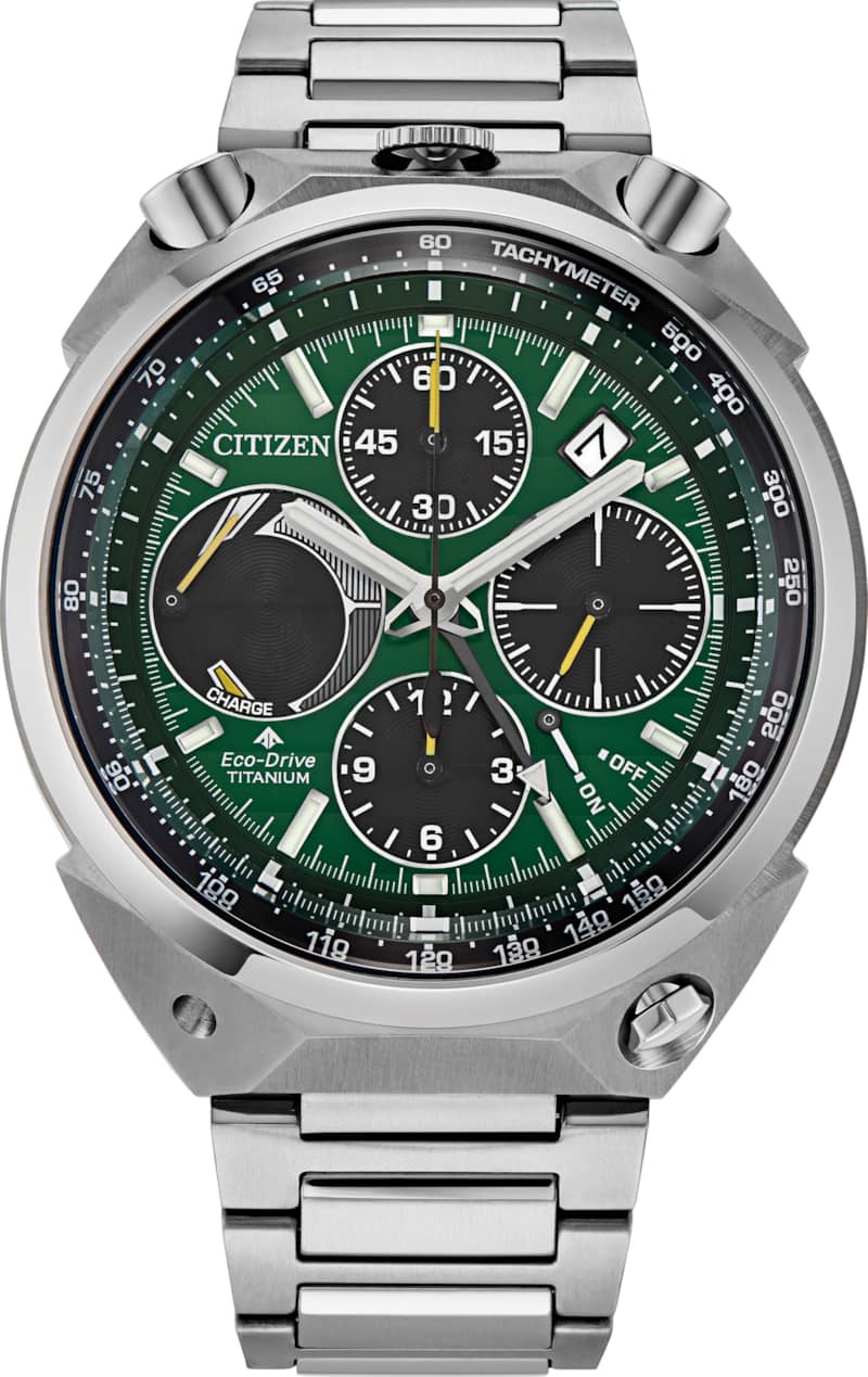 Citizen Eco-Drive Promaster Tsuno Chronograph Racer Green Dial Silver Titanium Bracelet Watch, 43mm