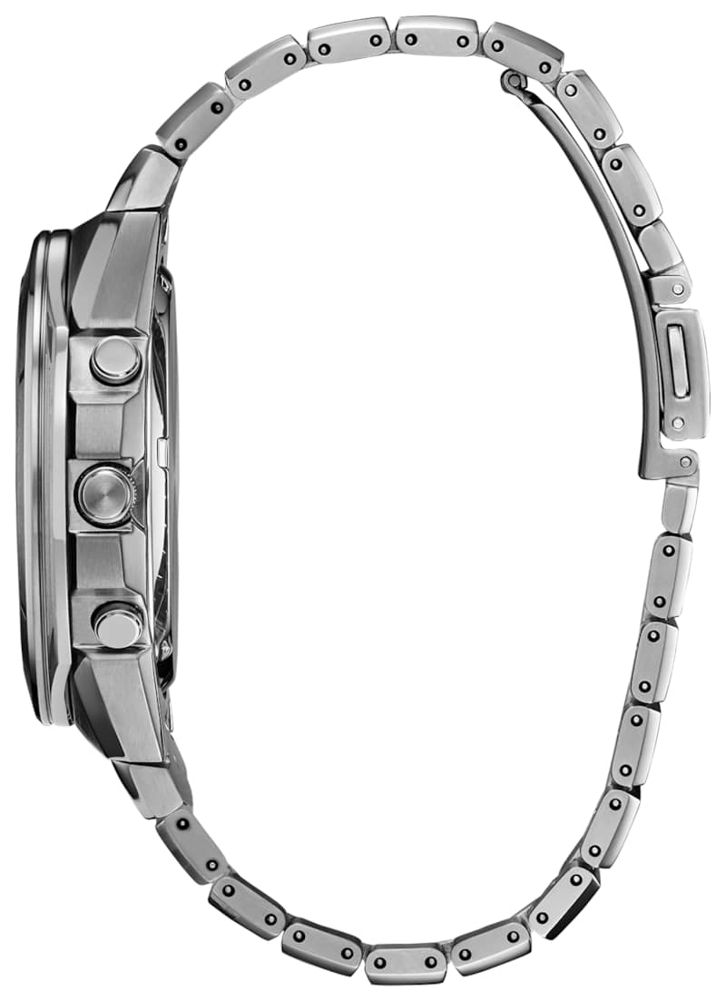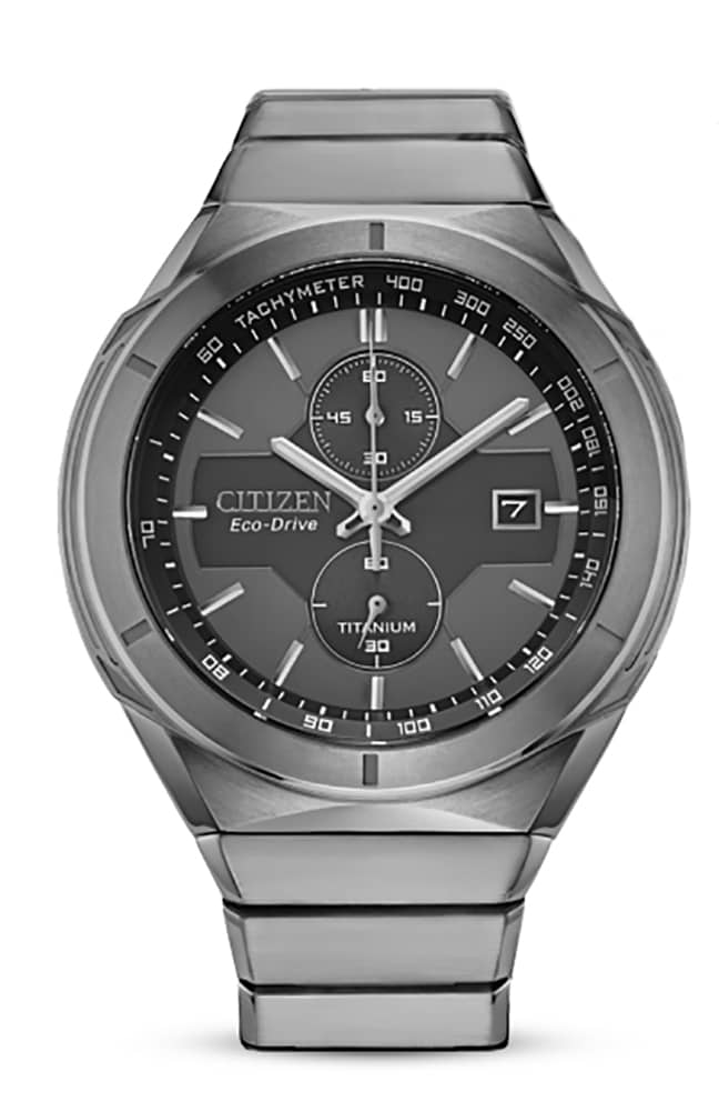 Citizen Super Titanium Armor 44mm Chronograph Watch w/ Grey Dial & Super Titanium Bracelet, Model CA7050-57HTitanium is the fourth most abundant structural metal on Earth. An incredible and lightweight material that doesn’t react to sunlight, saltwater or body chemistry, it reduces the potential of metal allergic reaction and is corrosion-resistant. In 1970, we launched the world’s first watch using solid titanium: the X-8 Chronometer. The name is a combination of X – representing the unknown – and 8, evoking the infinity symbol. It’s an expression of the boundless possibilities of titanium, a relatively unknown material at the time. We went on to build our Super Titanium™ collection, producing notable timepieces throughout the year. Features Movement Technology