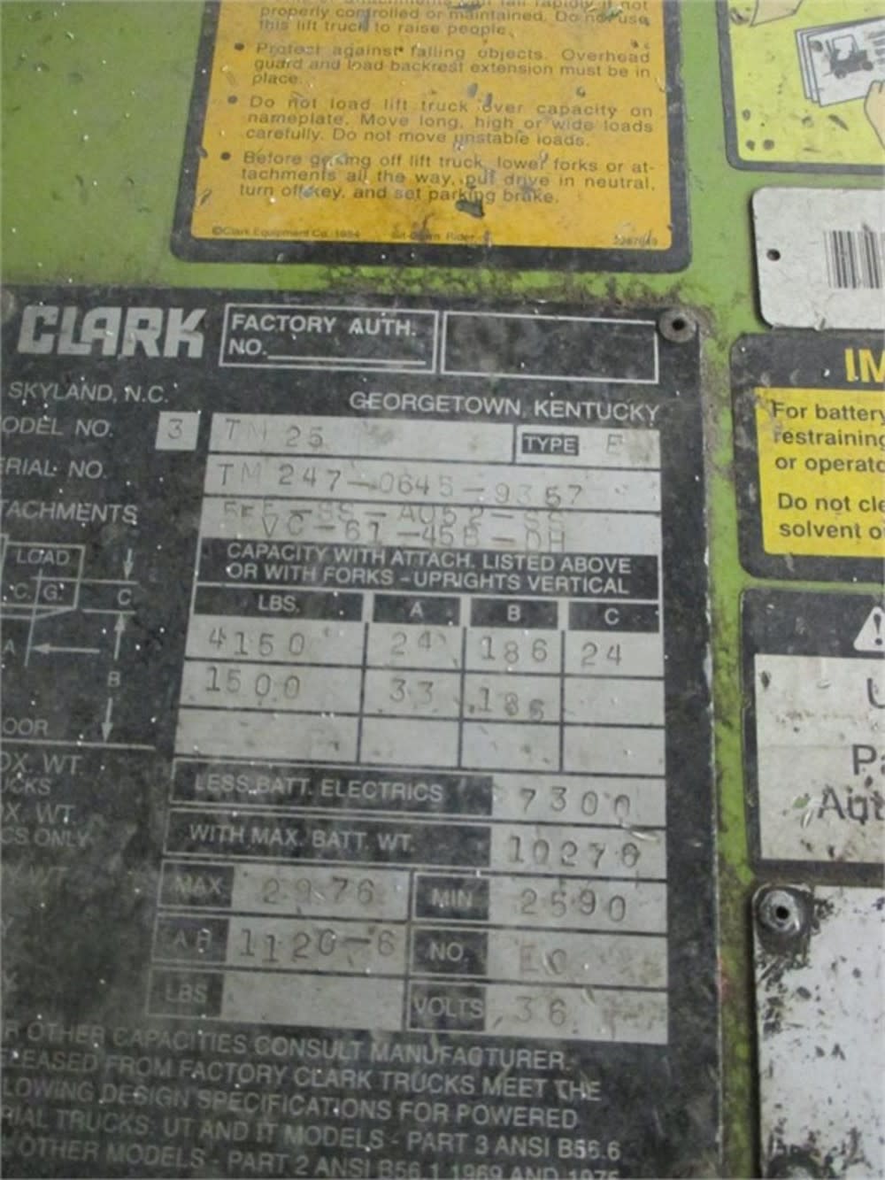 Clark Forklift 5000# Capacity 36V Electric TM25 – Used