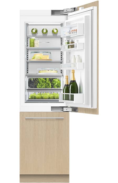 Fisher & Paykel RS2484WRU1 Series 9 24″ Panel Ready Right-Hinge Built-In Bottom Freezer Refrigerator, Ice & WaterA slim profile, perfect for compact kitchens, or pair it with other Integrated models for generous chilled and frozen storage. Features