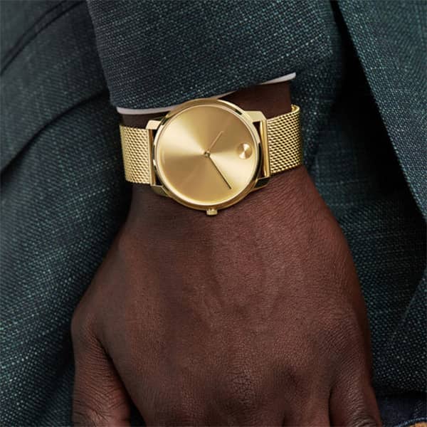 Movado BOLD Thin Yellow Gold-Tone Dial & Ion-Plated SS Mesh Bracelet Watch, 42mm