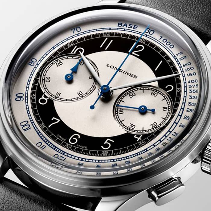 Longines Heritage Classic Chronograph Black Leather Watch, Silver Dial, 40mm
