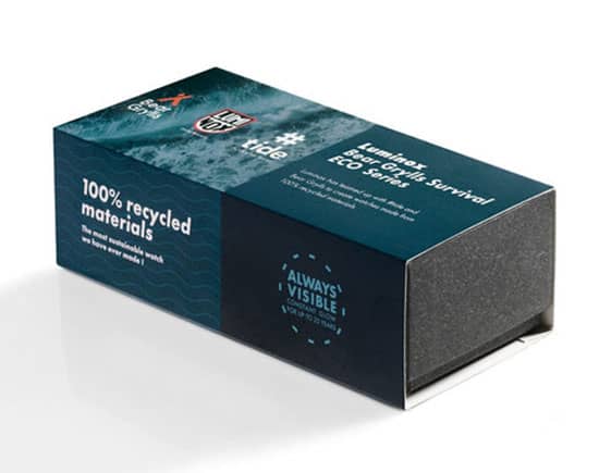 Luminox Bear Grylls #TIDE Survival ECO Master 45mm Sustainable Outdoor Chronograph Watch w/ Olive Green Dial & Strap, Model XB.3757.ECO#TIDE ocean materials are made from 100% ocean-bound plastic, developed in partnership with Swiss scientists. On five islands in the Andaman Sea off the coast of Thailand, local fishermen are being trained and paid to gather and sort plastic waste. Bear Grylls challenged Luminox to push even further in its quest for sustainability, by utilizing new upcycled plastic material for the case and black strap in partnership with #TIDE. The ecofriendly material provides equal durability and water resistance, both adventure essentials, as CARBONOX™. Features Bear Grylls Survival Series