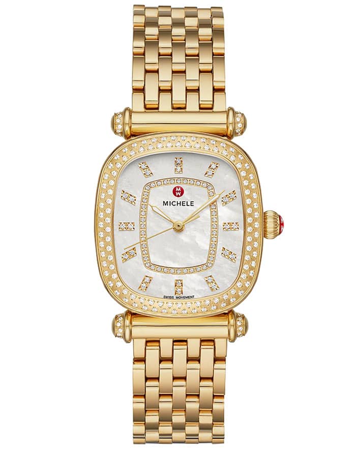 Michele Caber Isle MOP w/ Diamond Dial Gold-Tone Bracelet Watch, 32mm